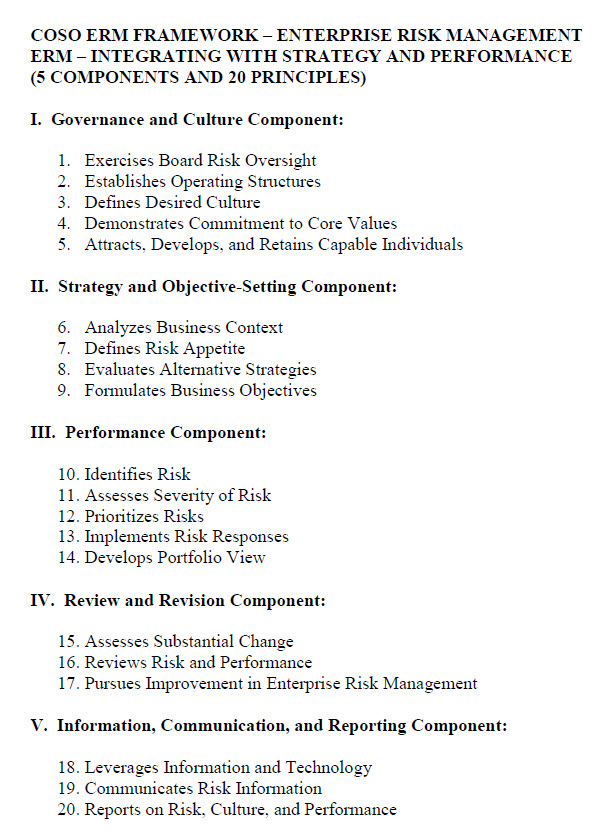 Now both the COSO 2013 internal control framework and the new COSO enterprise risk management (ERM) framework list culture and governance as important framework criteria. Culture and governance are the first, underlying criteria in the new COSO ERM framework. And many other organizations are now promoting culture, including the National Association of Corporate Directors.